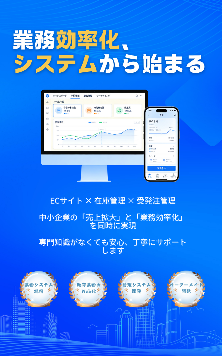スマホ・タブレットからも快適に操作できるシステムを構築します。